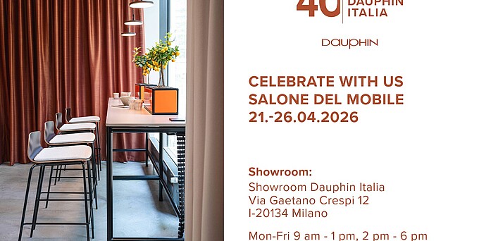 Die Dauphin HumanDesign Group feiert im Jahr 2026 das 40-jährige Bestehen ihrer italienischen Niederlassung Dauphin Italia. Seit der Gründung im Jahr 1986 in Mailand ist der Standort ein wichtiger Bestandteil der internationalen Aktivitäten des Unternehmens. Das Jubiläum wird im Rahmen der internationalen Möbelmesse Salone del Mobile mit einer exklusiven Veranstaltung gemeinsam mit dem Partner Artemide begangen.