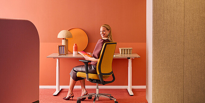 Kennzeichnend für Sequel cosy ist der vollständig stoffbezogene Rücken. Die textile Oberfläche verleiht dem Drehstuhl eine ruhigere, weichere Anmutung und unterstützt eine wohnlichere Raumwirkung – insbesondere in hybriden Arbeitsumgebungen, in denen Büro- und Wohnaspekte zunehmend ineinandergreifen. Dadurch fügt sich die cosy-Variante harmonisch in moderne Bürolandschaften ebenso wie in Homeoffice-Bereiche ein.